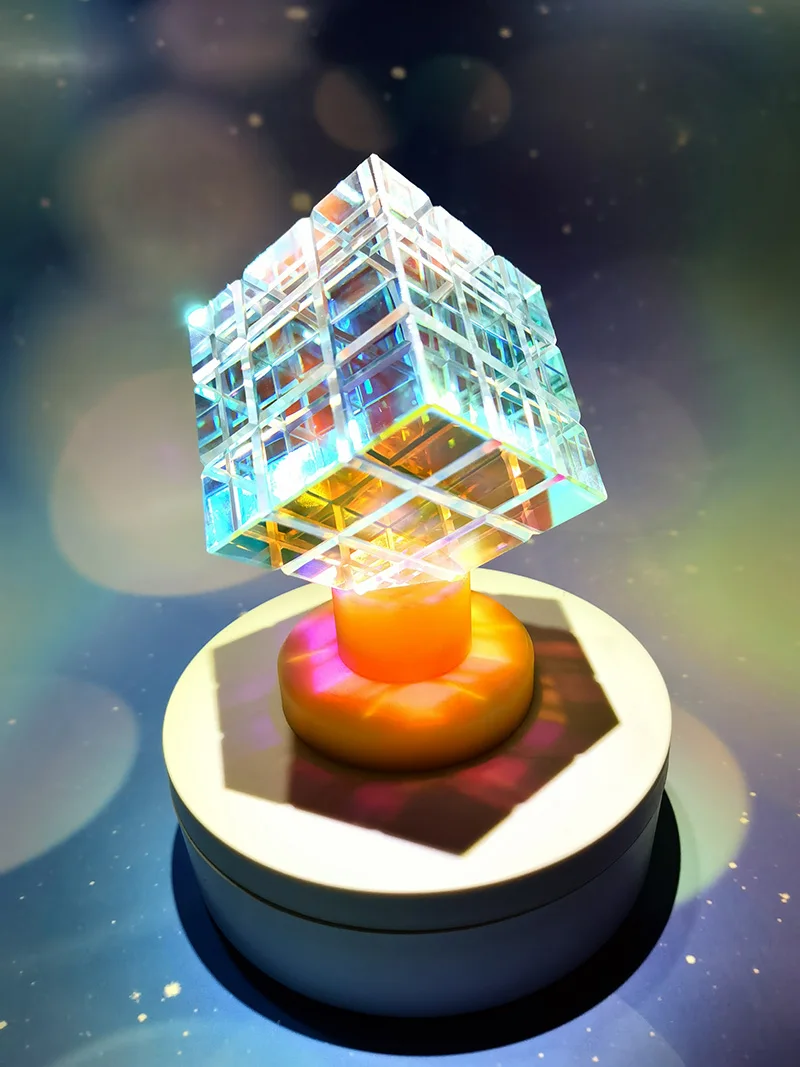 High-quality optical prism cube designed for colorful light refraction and display. Ideal for photography, scientific experiments, or modern desktop decoration.