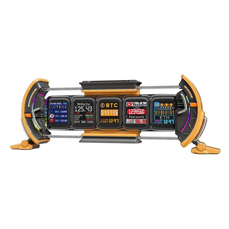 This Pixel art clock consists of 5 full-color LCDs. The IPS screens can display up to 128*128 pixel art static pictures and GIFs.