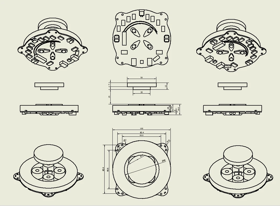 The module has a wireless power module interface, and the magnetic suspension is used as a floating button interface. It is not soldered by default! The black ferrite magnet at the bottom is very fragile. Please pad foam paper in the middle during debugging!
