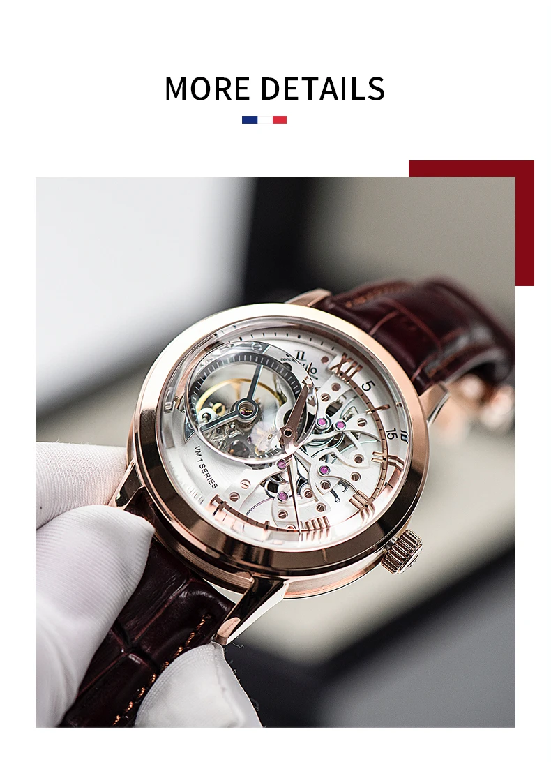 Men Mechanical Skeleton Wristwatch with Sapphire Glass