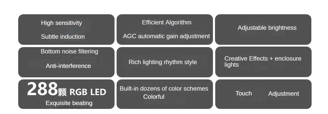 Features: Frequency-Accurate Algorithm, Music Level Indicator, RGB Light Display