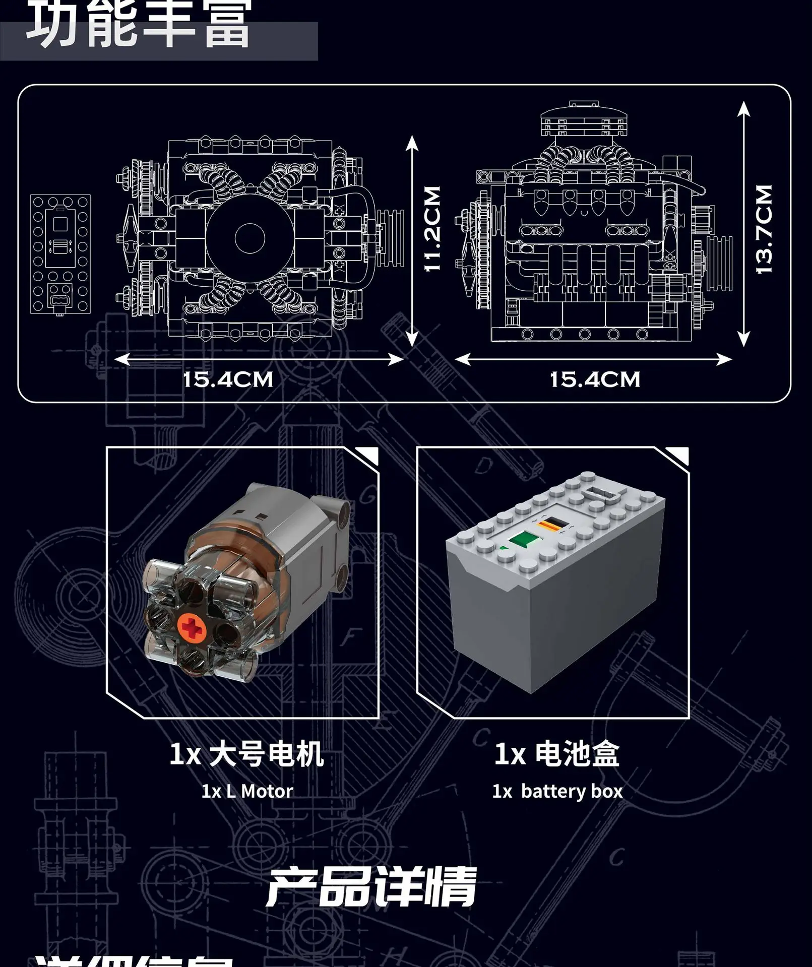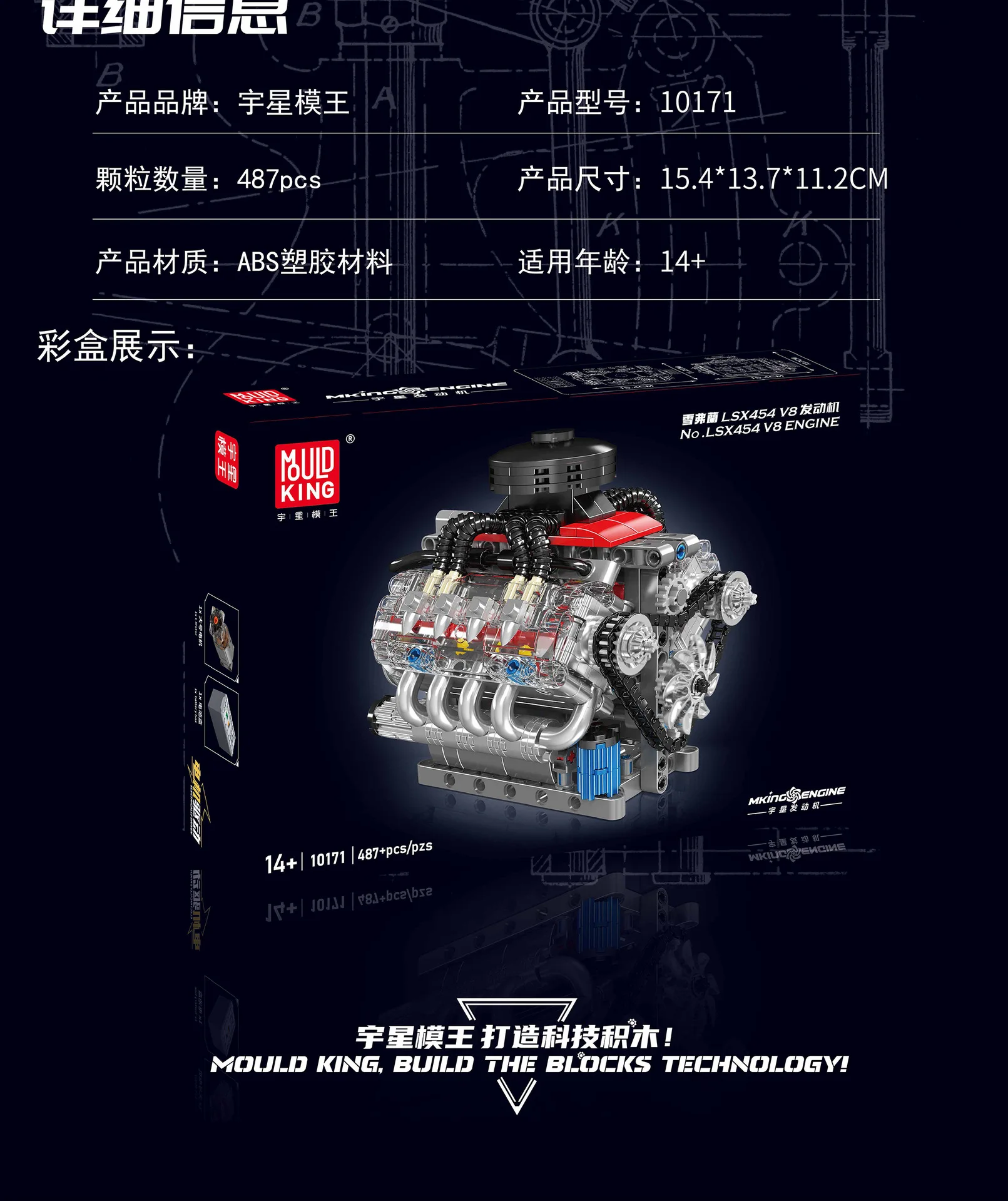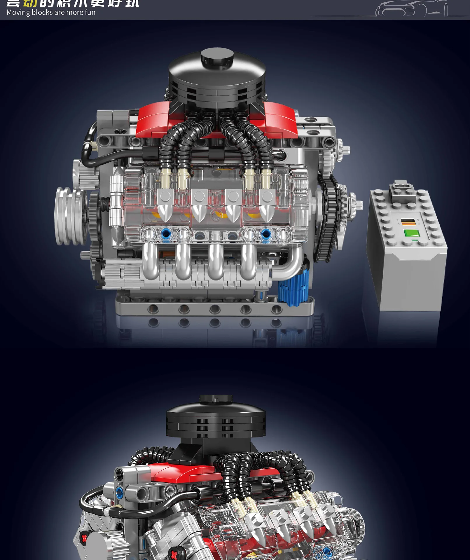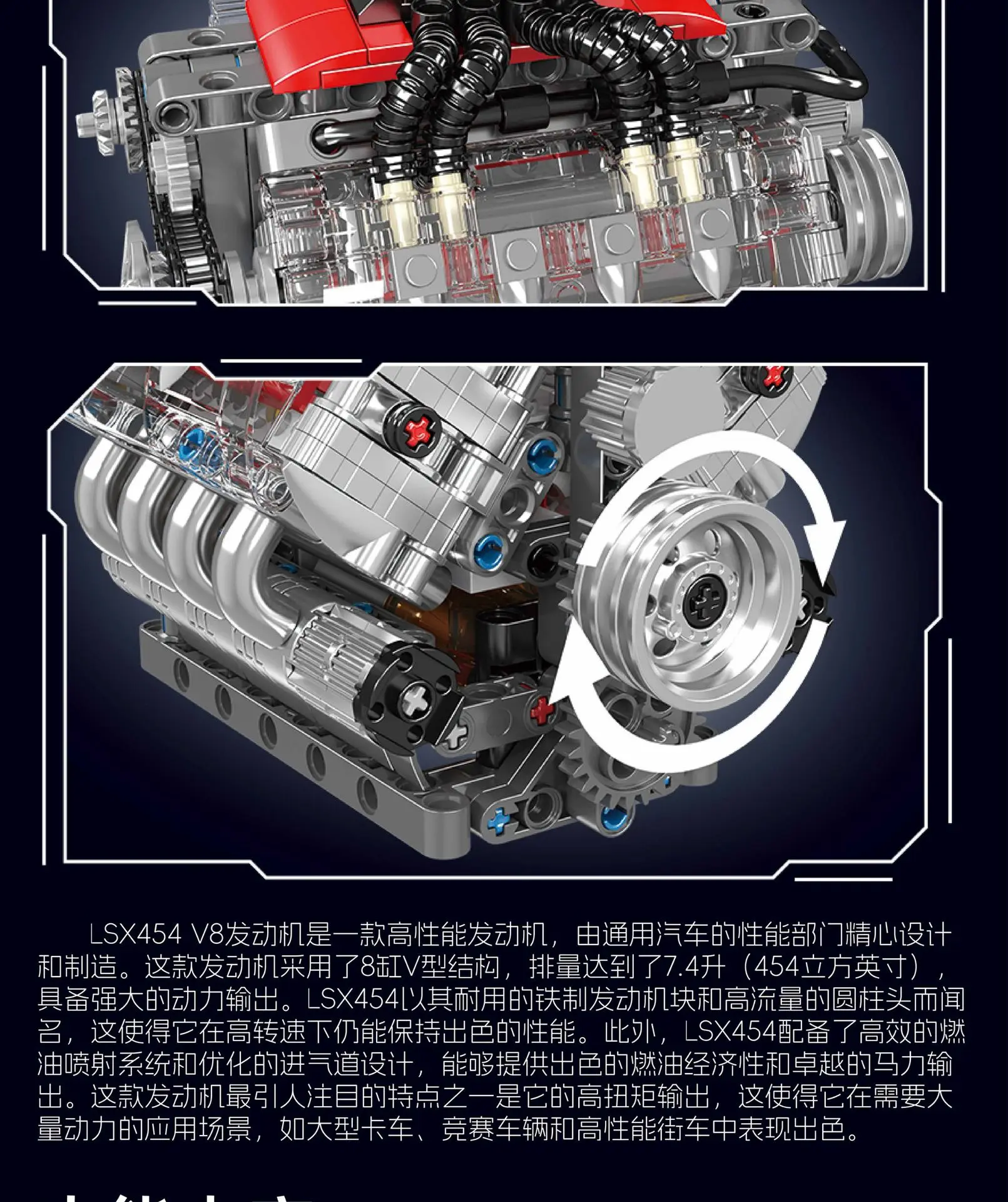 V8 Engine Model Kit LSX454 Motorized Car Building Blocks